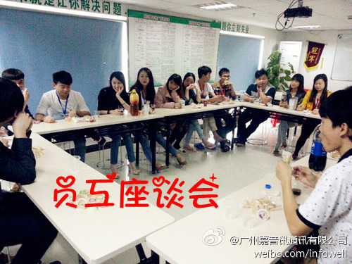 2014年11月6日,今天我們舉辦了10010部門的新員工座談會,傾聽大家的心聲,同時解決新同事入職所遇到的來自工作、生活、壓力等多方面的問題,我們也請來了優(yōu)秀員工給我們分享工作經(jīng)驗,技巧……現(xiàn)場為大家解答問題,對于不能即時回答的問題,我們都會記錄大家的反饋,盡快解決員工們的疑惑和問題!